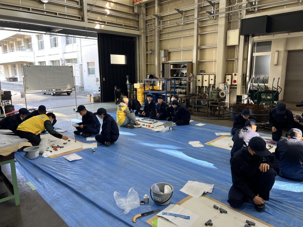 機械造船科1年生29名が、組合員と水道管の配管作業を体験してもらいました。将来水道関係の仕事に興味を持っていただけたら幸いです。