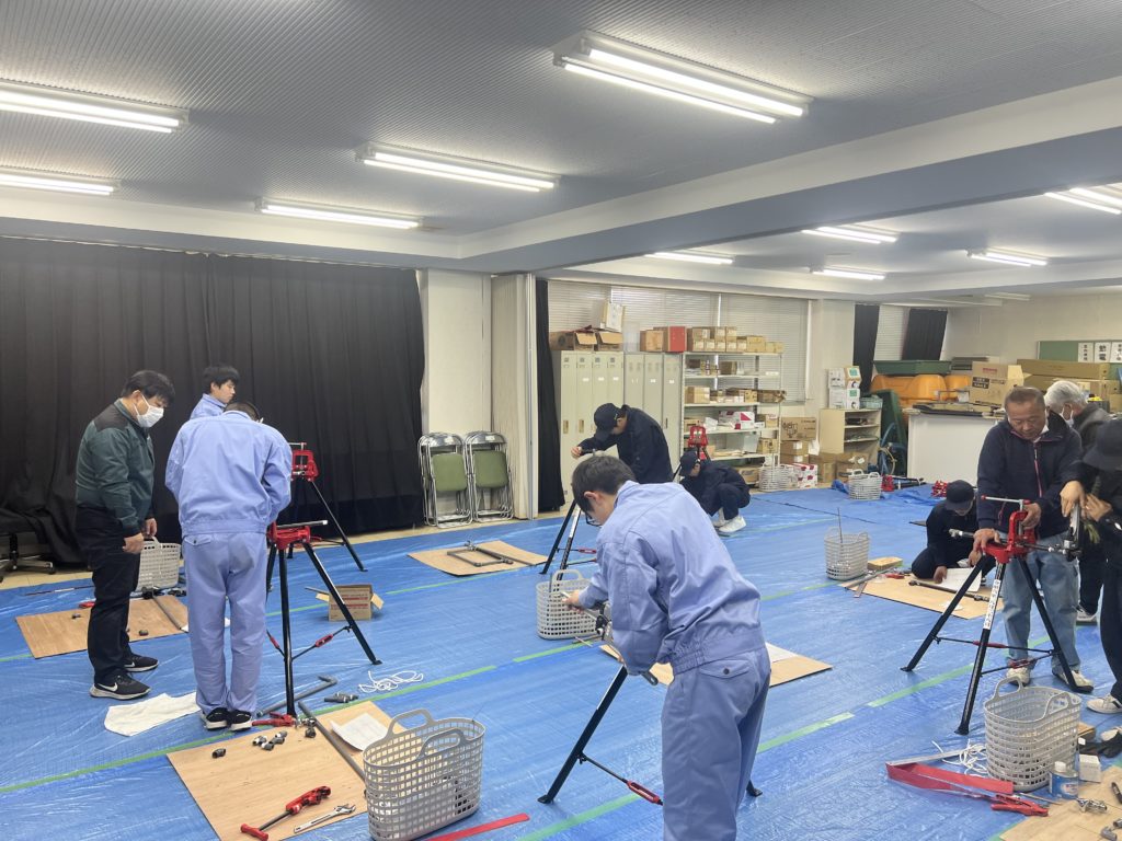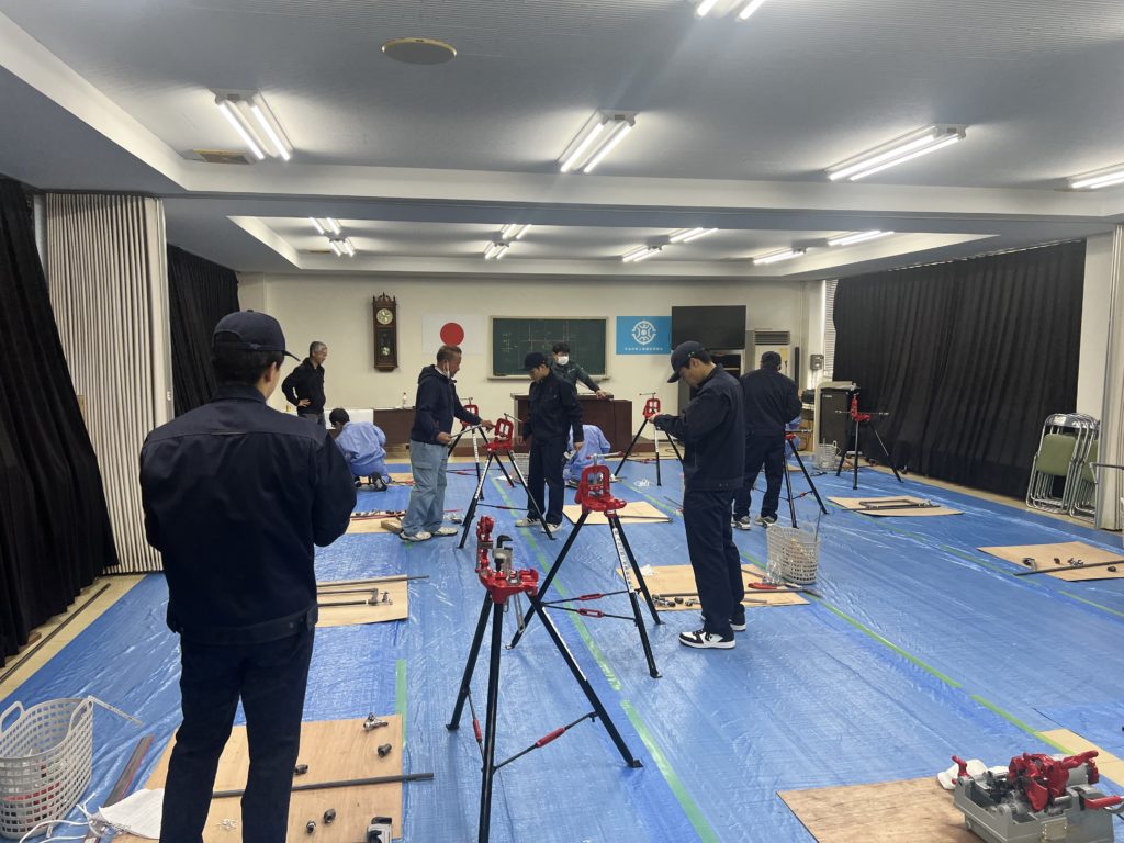 活動報告 3級技能検定配管職種建築配管作業受験のための実技講習会(第3回) 投稿日:2026年1月8日 令和8年1月7日(水)今治市管工事業協同組合研修室にて今治工業生徒8名参加のもと第3回目の実技講習会が行われました。